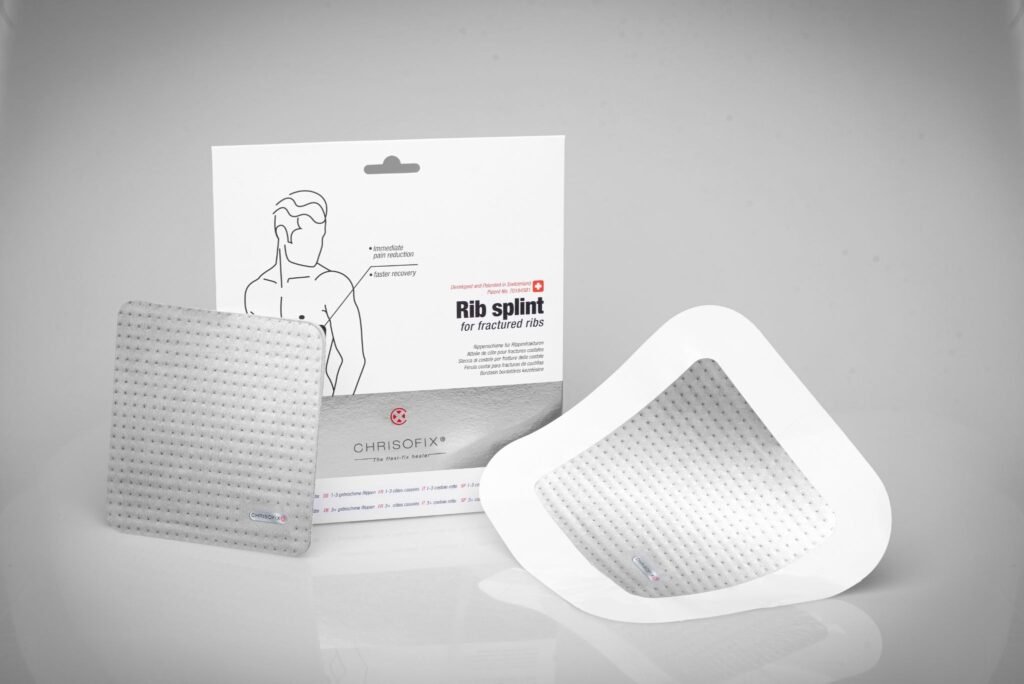Eine der fortschrittlichsten nicht-invasiven Optionen, die heute verfügbar sind, ist die Chrisofix® Rippenbandage, ein in der Schweiz entwickeltes externes Stabilisierungssystem (Chrisofix IFU, 2025). Im Gegensatz zu herkömmlichen Gurten wird diese Bandage direkt über dem verletzten Bereich angelegt und an die spezifische Anatomie des Patienten angeformt (Chrisofix IFU, 2025).